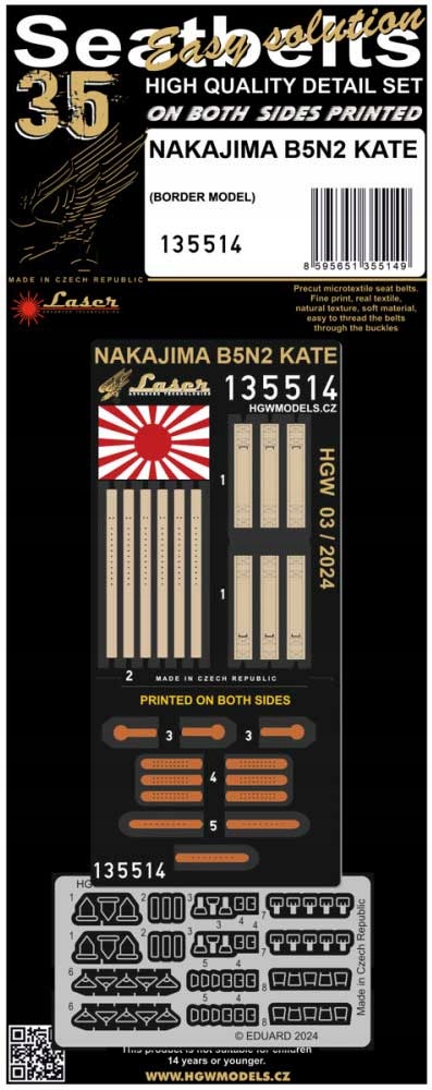 Ремінці HGW 135514 1/35 для Nakajima B5N-2 Kate (модель з межею)