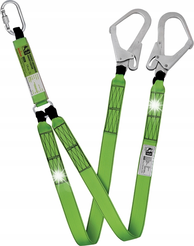 - одна сторона поглинача енергії обладнана карабіном, інша два знімачі, обладнані сталевим вушним гаком,