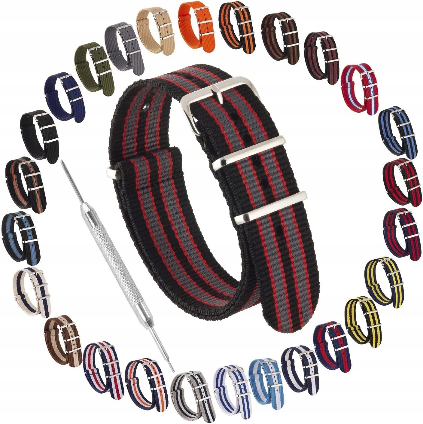 Цілісний ремінець НАТО для годинника. Смужки різних кольорів і візерунків. Швидка заміна. Ремені відповідно до події та вбрання. Клеєно-прошита, з'єднання 0,05 в хорошій якості. Міцна щільна нейлонова тканина. Оригінальний і правдивий дизайн. Доступна ширина ремінця 8 мм, 20 мм, 22 мм і 24 мм. Довжина 270 мм. Регулювання U20 3 підходить для більшості зап’ясть, не підходить для розумних годинників. Точний крой, вшиті пряжки та шлевки з нержавіючої сталі. У набір входить пістолет для знімання пружинних штифтів.