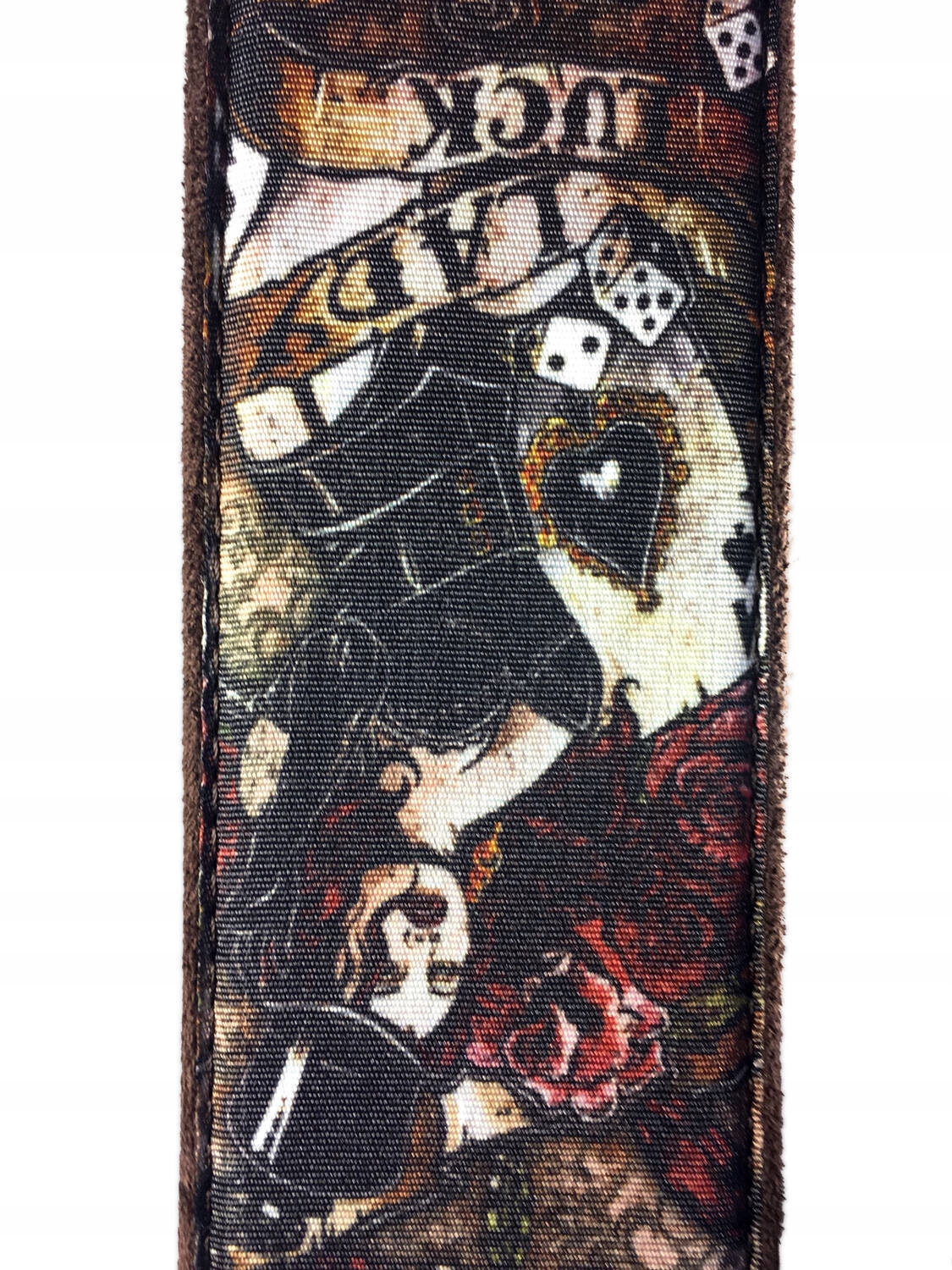 Гітарний ремінь з унікальним характером. Його лейтмотивом є випадковість, а по всій довжині смуги вигравірувано кубики, покерні карти та діаманти. Ці чудові візерунки створила художниця Ксанія Грей, яка співпрацює з RightOn Straps.