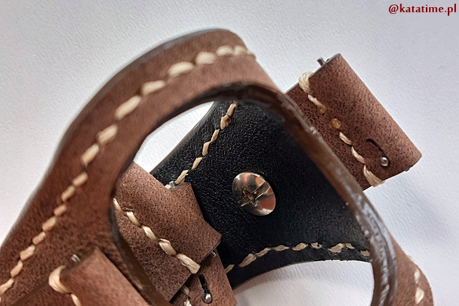 Ремінець для годинника ручної роботи. Натуральна, натуральна шкіра, темно-коричнева, матова. Пояс прошитий ниткою екрю. Боковини лаковані, коричневі. Можливість носіння годинника з відстанню 18 або 20 мм (другий набір шкіряних петель в комплекті). Пригвинчуються петлі, в які вставляються телескопи. Все було відпрацьовано до дрібниць. 100% польський товар. Ремінець ідеально підійде до всіх годинників і смарт-годинників із простими телескопами.