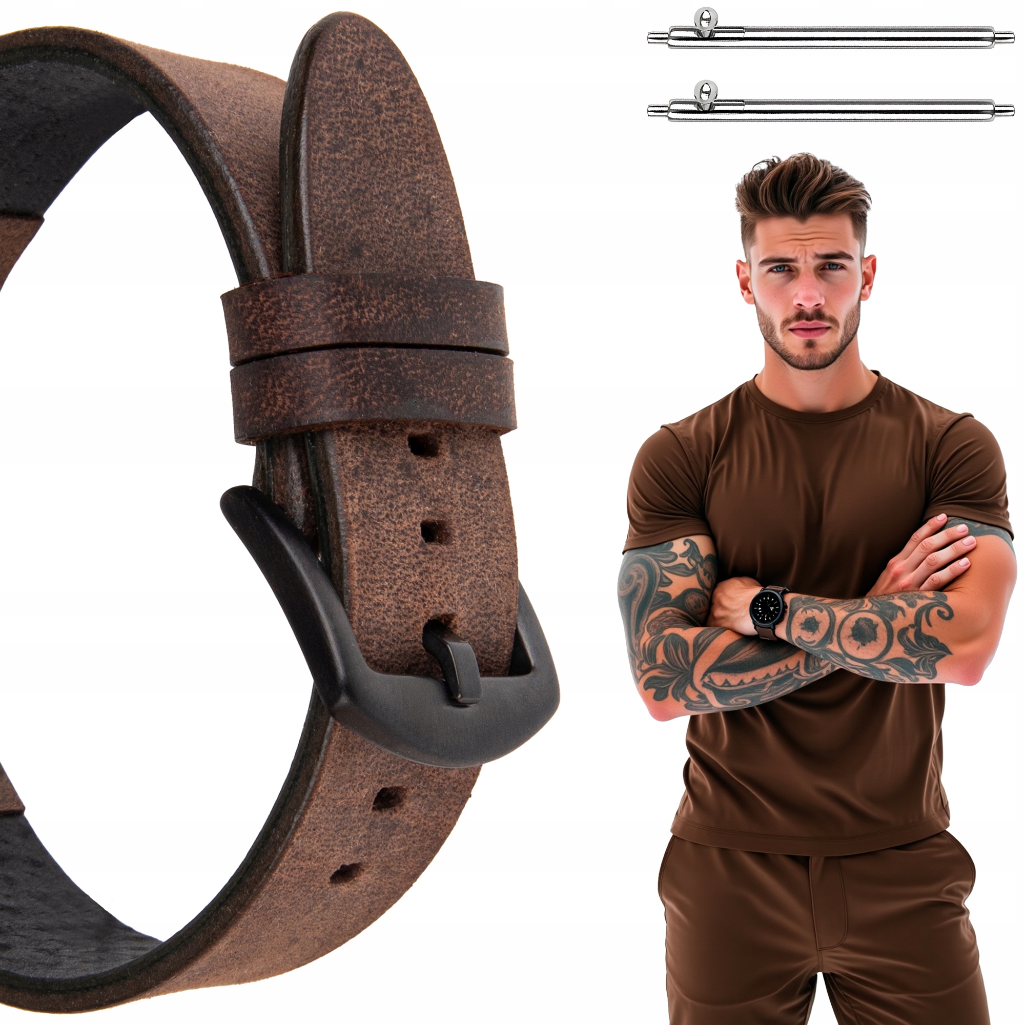 Ремінець шкіряний для годинника 22мм, Універсальний, Розмір L