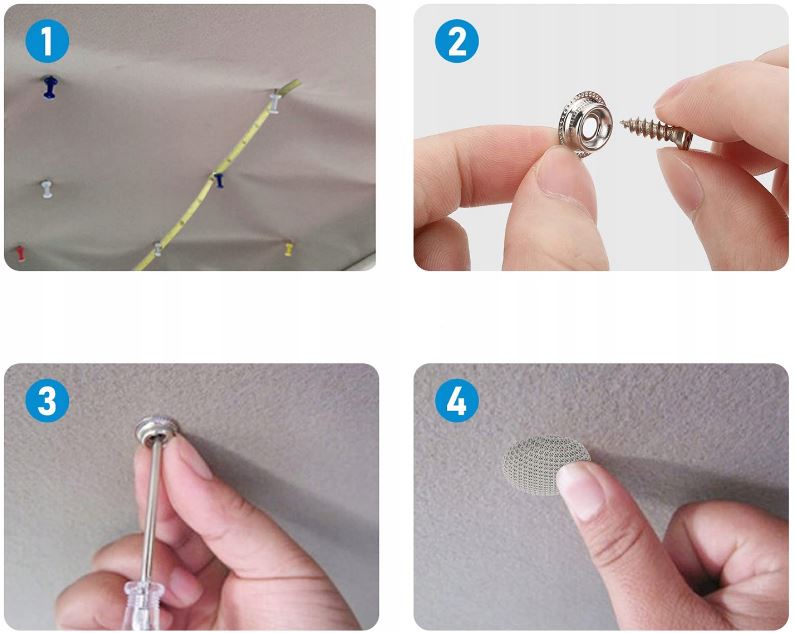 ✅ Зручне складання : Збірка набору проста, до комплекту входить викрутка. Просто позначте місце, де ви хочете прикріпити заклепку, а потім прикріпіть її за допомогою викрутки. Рекомендована відстань встановлення 10-15 см.