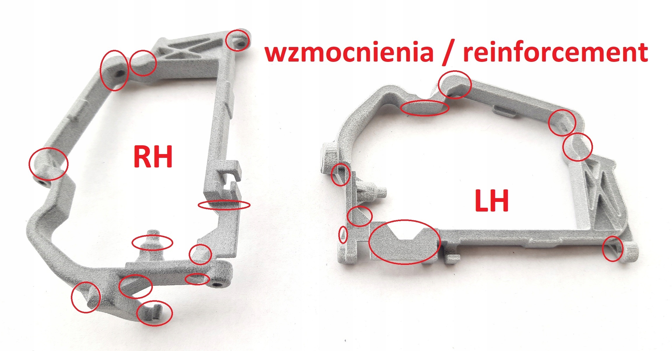 Хоча дзеркальний механізм працює в дуже жорстких умовах, наша конструкція була розроблена з кількома підсиленнями в місцях, де оригінал та інші крихкі заміни найчастіше ламаються.
