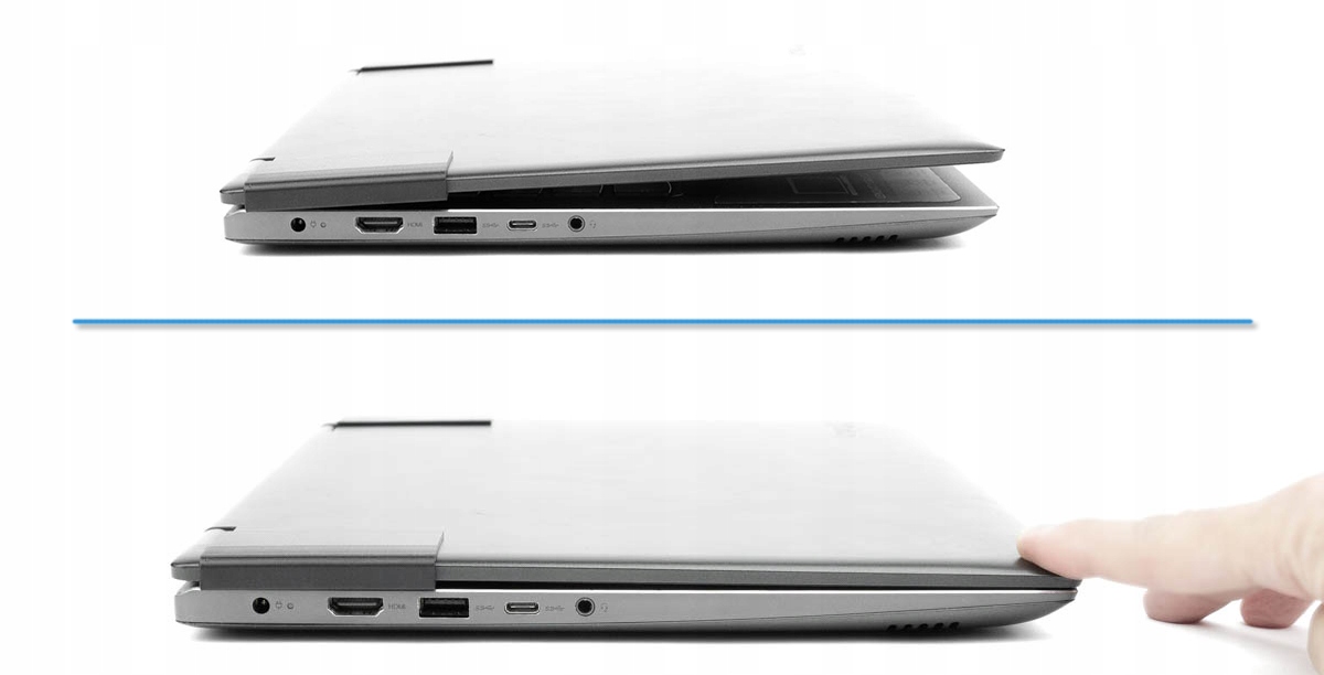 Завдяки дизайну ноутбука та товщині затискачів після закриття ноутбука залишається невеликий зазор, який не впливає на використання пристрою.