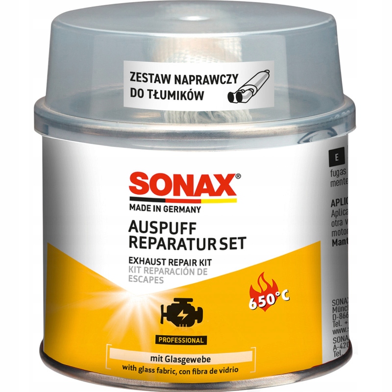 У комплект входить паста для герметизації вихлопної системи та спеціальна стрічка зі скловолокна, стійка до високих температур. За допомогою набору можна швидко закрити дірки, тріщини, розриви і витоки вихлопної системи, забезпечивши абсолютну газонепроникність. Продукт стійкий до високих температур і не містить азбесту.
