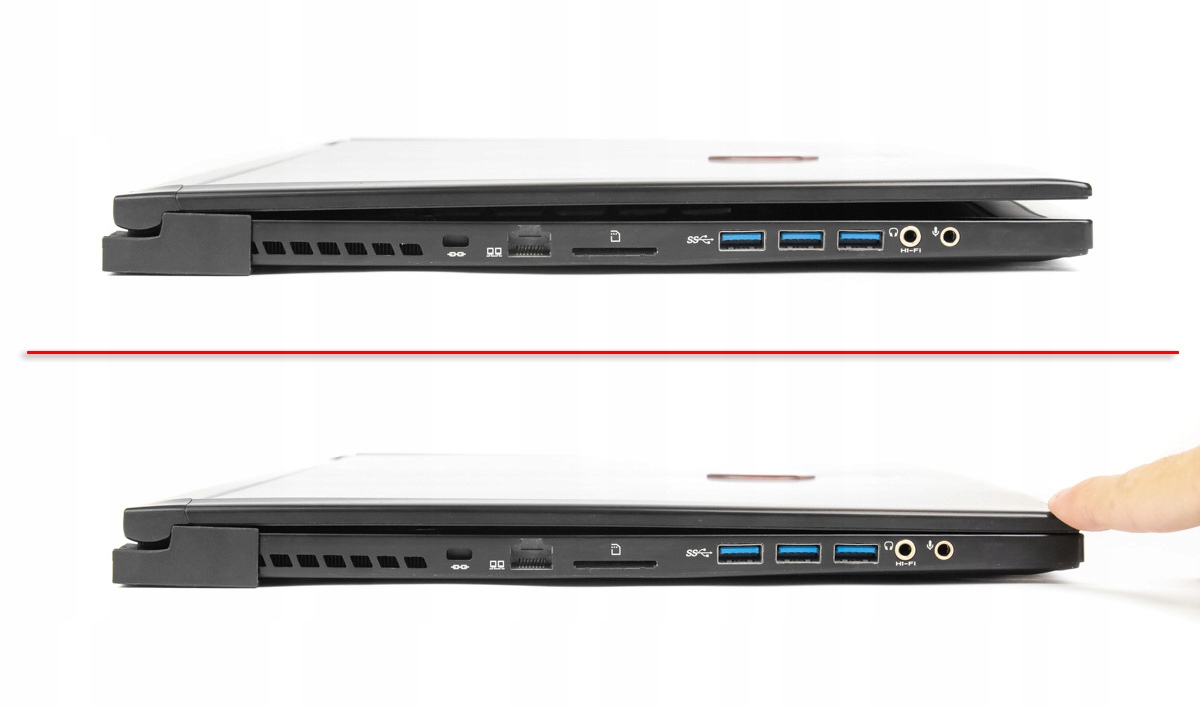 Через дизайн ноутбука та товщину затискачів, після закриття ноутбука може залишитися невеликий зазор, який не впливає на використання пристрою (легке натискання рукою повністю закриває кришку).