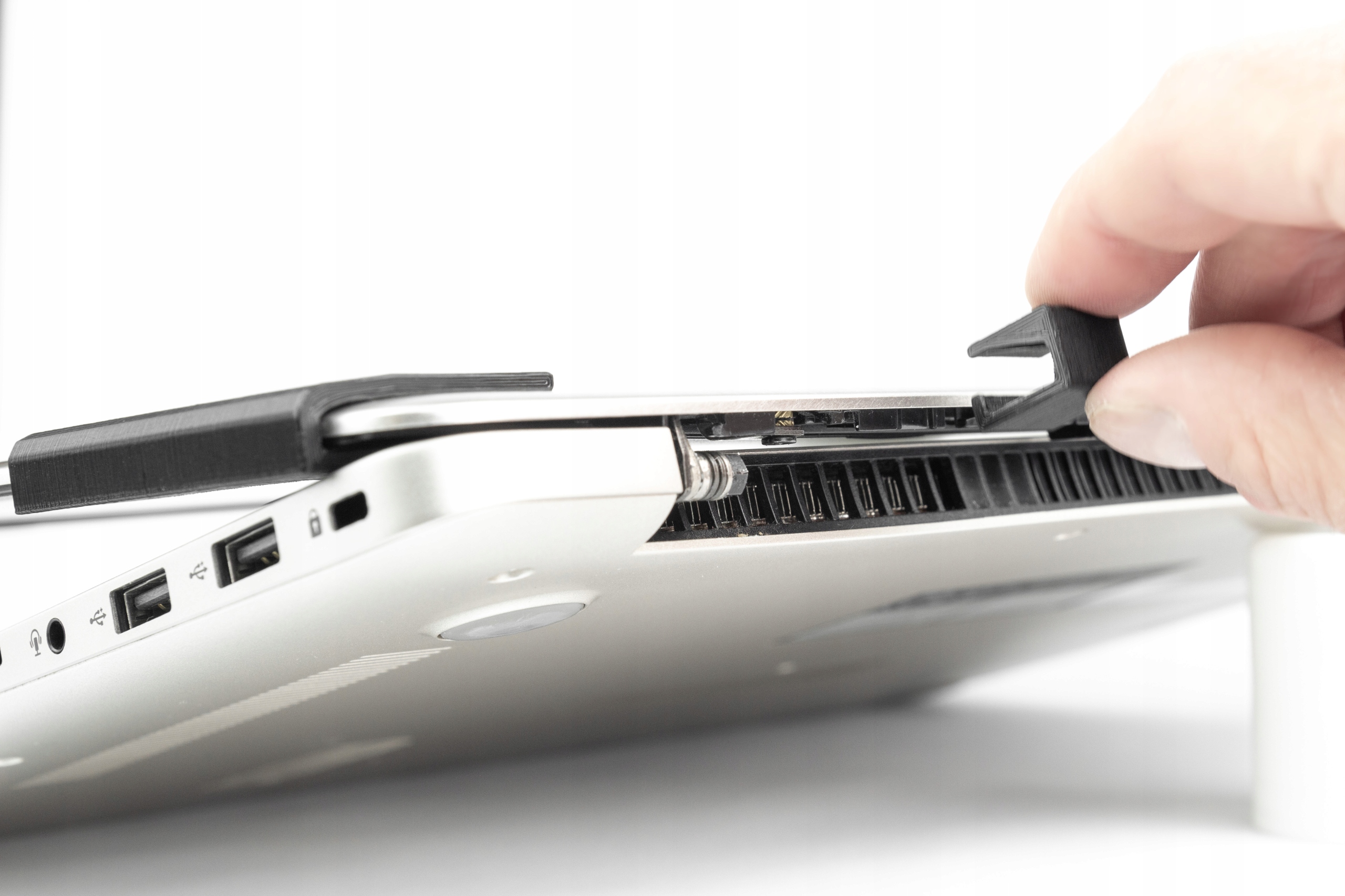 Ми не склеюємо ноутбук (клей все одно відіб'ється), ми не проводимо ніяких інших ремонтів, ми лише прикріплюємо спеціальні кліпси і знову використовуємо ноутбук у звичайному режимі.