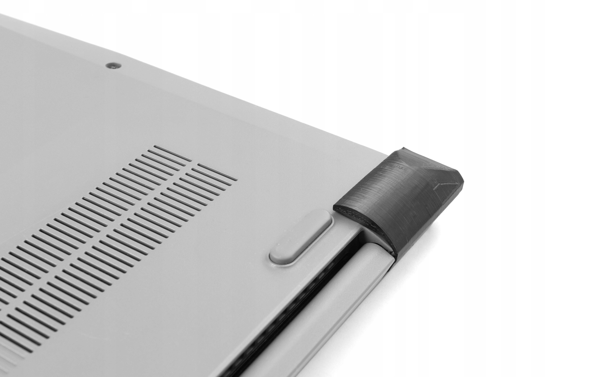 2. Кліпса має замок/язичок з внутрішньої сторони. Під час встановлення він має знаходитись у виїмці для гвинта кріплення корпусу (замок запобігає зісковзуванню кліпси під час використання ноутбука)
