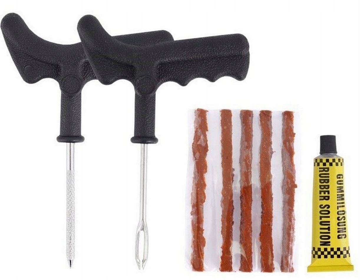 Ремкомплект для шипованих безкамерних шин. Він дозволить швидко і недорого відремонтувати пробиту шину. Відразу після завершення ремонту та заповнення втрати повітря в шині можна продовжувати подорож. Ідеально підходить для шипування автомобільних і мотоциклетних шин.