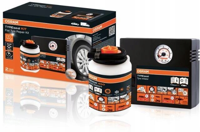 OSRAM TYREseal 450 і OSRAM TYREseal KIT — це герметики для шин від OSRAM, які використовують технологію частинок гелю для герметизації проколів шин і виготовлені відповідно до Стандарт OE виробників автомобілів. Доступний у вигляді комплекту, наприклад, OSRAM TYREseal KIT, з герметизуючим гелем, компресором і кришкою, або як OSRAM TYREseal 450, тобто як пляшка гелю пломбування.