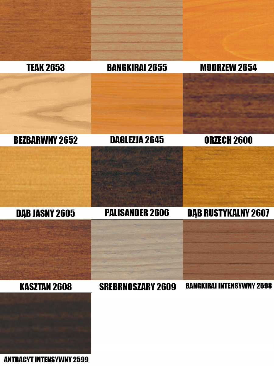 - безбарвна версія : не захищає від УФ і не запобігає сірому деревини на відкритому повітрі. Потрібно регулярне оновлення .