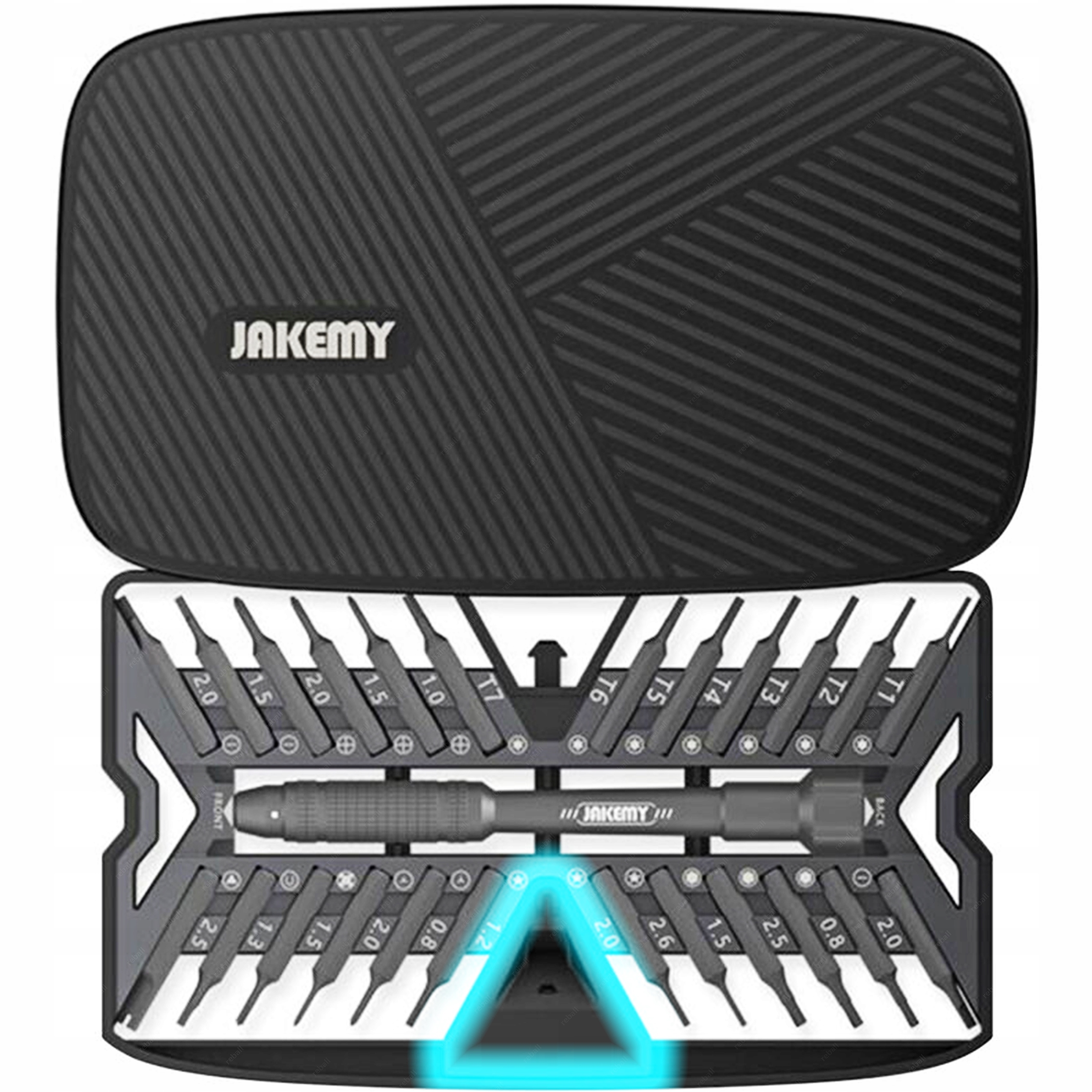 Jakemy JM-8178 — це набір із 25 прецизійних біт із легкою алюмінієвою ручкою, призначений для точного сервісного ремонту телефонів і смартфонів, у тому числі продуктів Apple і всієї побутової електроніки. . p>
