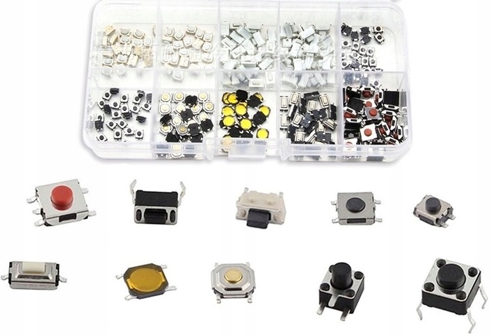Ми представляємо наш повний ремонтний набір ключів, пультів Micro-Switch, які ідеально відповідатимуть вимоги кожного професійного електроніка, техніка з обслуговування та любителя. Цей набір містить 10 різних типів мікроперемикачів, по 10 штук кожен, що дає до100 кнопок. Призначений для встановлення за технологією SMD та через отвір.