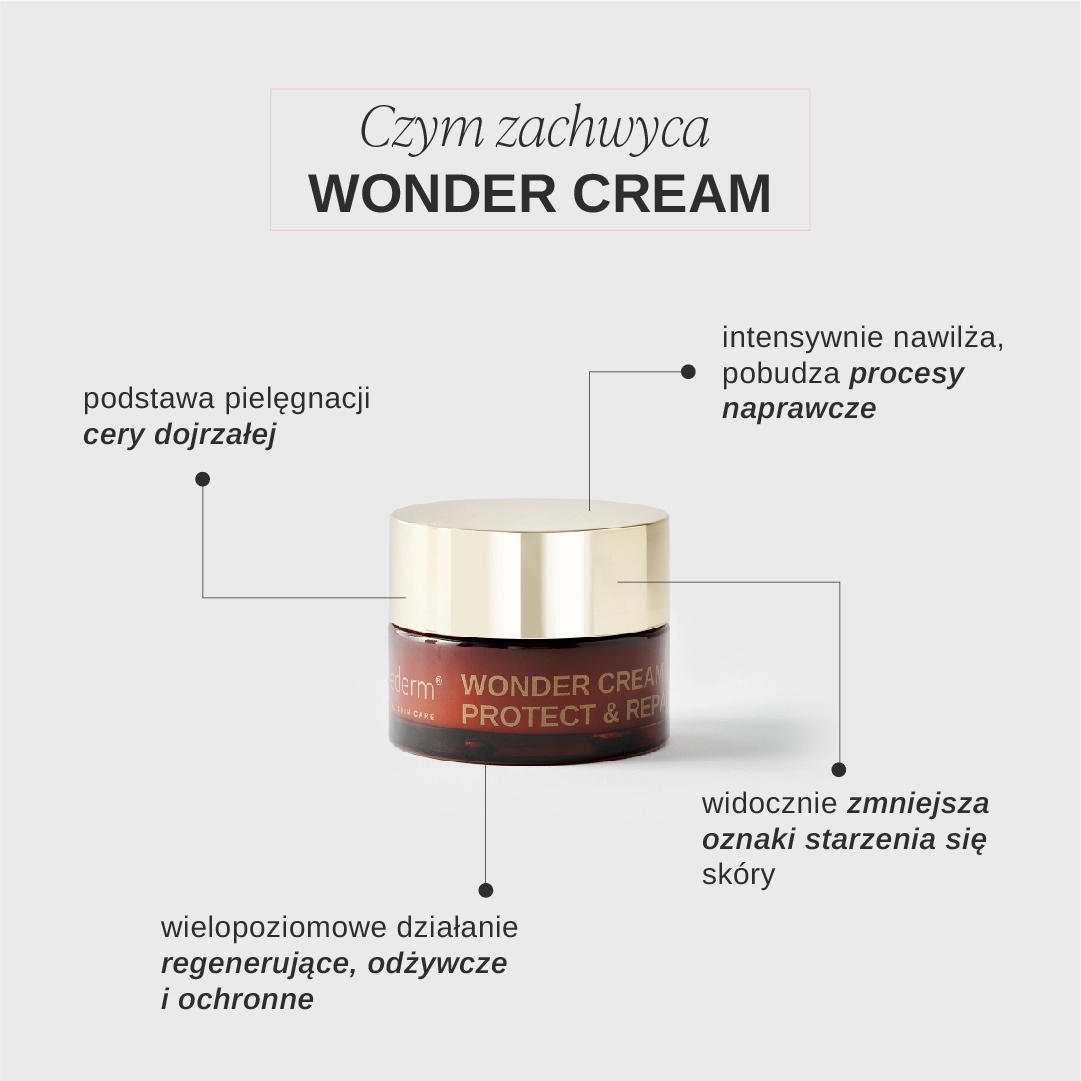 Рецепт крему Wonder заснований на органічних та натуральних діючих інгредієнтах з найбільшою ефективністю. Процес холодного виробництва та ретельне поєднання композиції дозволяють досягти видимих результатів першого застосування.