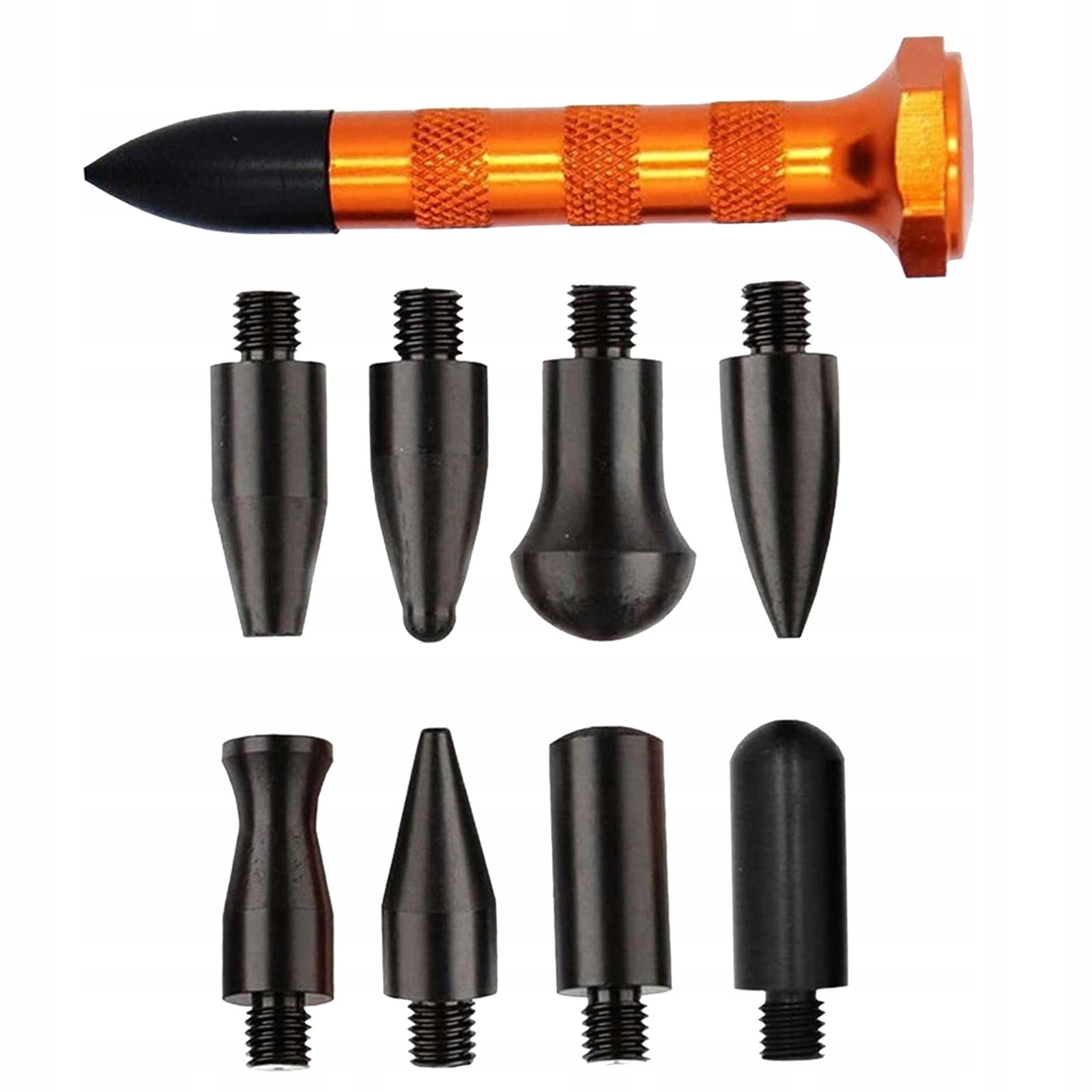 [Набір інструментів для ремонту вм'ятин] Професійна ручка для ремонту вм'ятин на кузові автомобіля з 9 головами різного розміру, розроблена для ремонту всіх типів вм'ятин, що використовуються для ремонту вм'ятин на плитах автомобілів, ефективно та швидко видаляють вм'ятини. Він витримує повторні наслідки. Голови для стучення отворів спеціально розроблені для запобігання подряпинних поверхонь. Для ремонту вм'ятин у автомобілях без фарбування його можна широко використовувати для ремонту вм'ятин, вм'ятинних дверей, тіла мотоциклів, вантажівок та інших металевих пластин, таких як кухонна техніка, мікрохвильові печі, холодильники, пральні машини та інші металеві потоки. Ідеально підходить для професійного та домашнього використання. Хороший допоміжний інструмент для ремонту автомобіля.