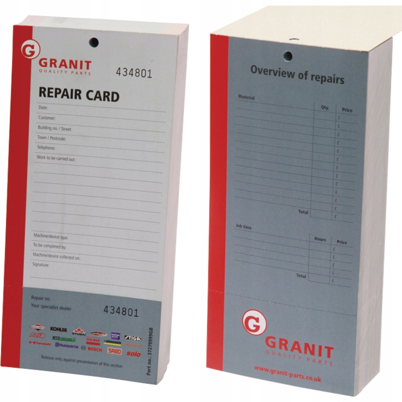 Ремонтна карта - блок 200 шт. Англійська ГРАНІТ