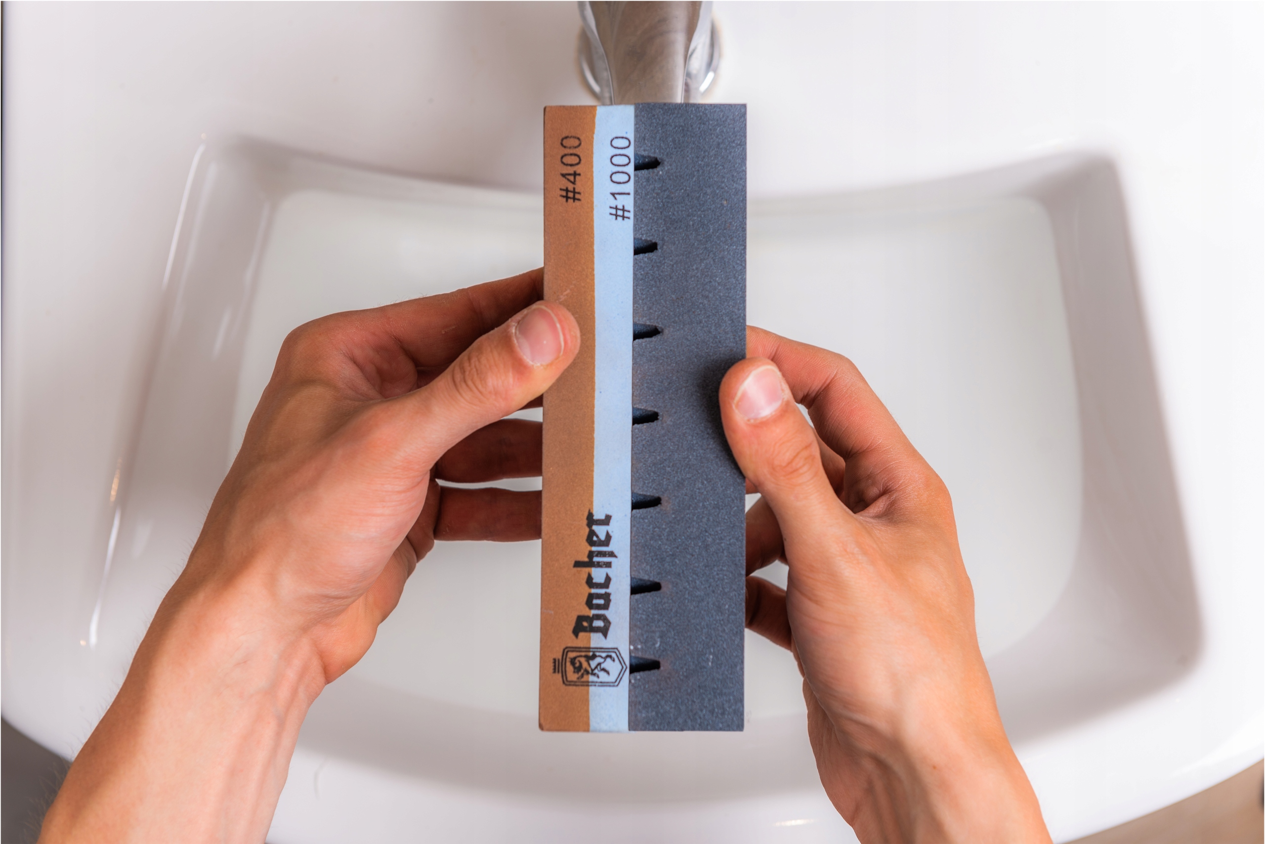 Рішенням цієї проблеми є ремонтний камінь Bacher, який швидко та ефективно вирівнює поверхню водних каменів, повертаючи їм належні абразивні властивості. Завдяки використанню грубозернистого та дуже міцного карбіду кремнію із зернистістю 220 виправити деформовану поверхню використаних водяних каменів надзвичайно просто й можна досягти за кілька хвилин.