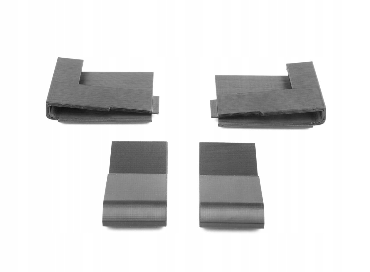 Набір складається з чотирьох елементів: двох затискачів (лівого і правого) і двох фіксуючих затискачів (лівого і правого).