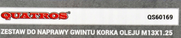 Просматривая «Ремонтний комплект різьблення пробки масляного піддона M12 - M13», вы можете быть уверены, что данный товар из каталога «Ремонтные комплекты для розеток масляных пробок» будет доставлен из Польши и проверен на целостность. В цене товара, указанной на сайте, учтена доставка из Польши. Внимание!!! Товары для Евросоюза, согласно законодательству стран Евросоюза, могут отличаться упаковкой или наполнением.