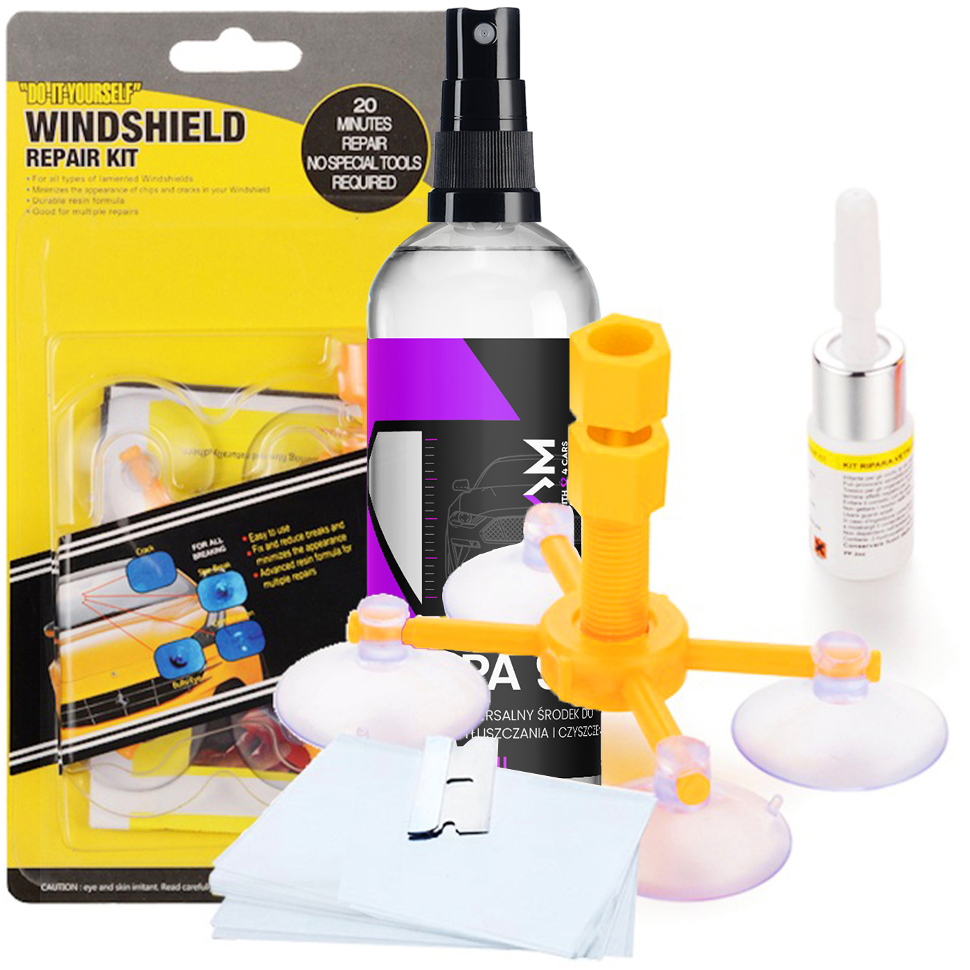 РЕМОНТНИЙ КОМПЛЕКТ SPIDER SPIDER ДЛЯ ТРІСНАНОГО ЛОБОВОГО СКЛА + IPA 99%