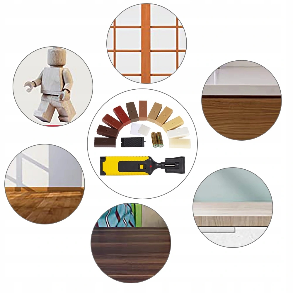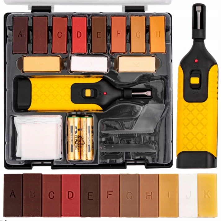 Набір дозволяє самостійно усунути пошкодження на дерев'яних і деревоподібних поверхнях. Його також можна використовувати для відновлення пошкоджень на кам'яних і керамічних поверхнях. Віск, що входить до складу набору, усуває глибокі подряпини, тріщини, просвердлені отвори, забоїни та потертості. Воскові палички в 11 кольорах дозволять підібрати ідеальний колір для ремонту, напр. Варто відзначити, що віск можна змішувати до отримання потрібного кольору. Він заповнить щілину, а після висихання захистить відремонтований предмет.