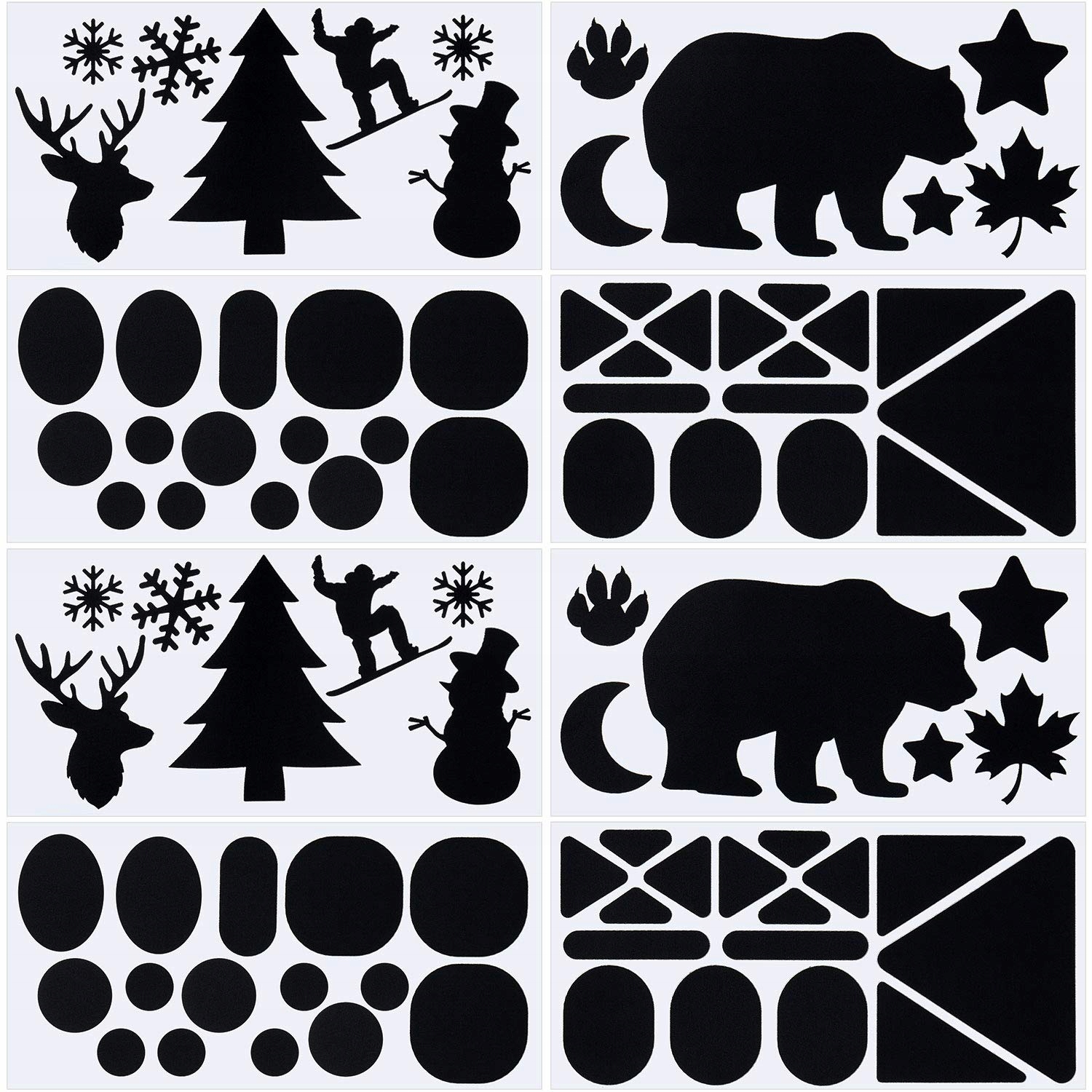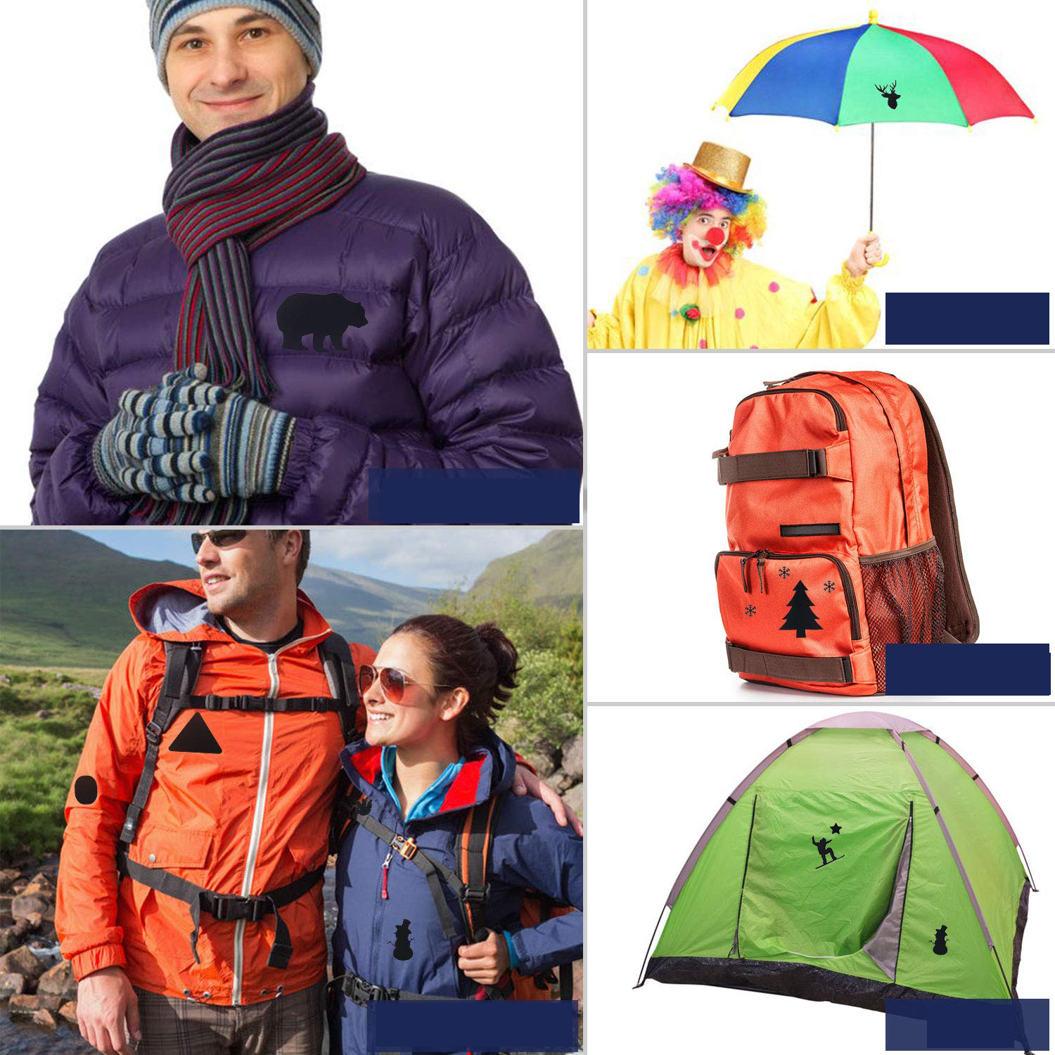 Нашивки з тканини, які можна прати, мають різні візерунки, наприклад сніговик, ведмідь, кленовий лист, лось, лапа, сніжинка, місяць, трикутник, коло, квадрат, прямокутник тощо. Вони підходять для ремонту одягу і можуть бути гарною прикрасою.