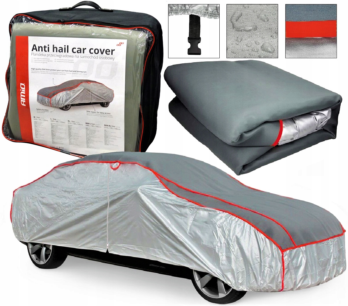 - Верхня частина брезенту ламінована спеціальною піною товщиною близько 5 мм, яка ідеально поглинає удари граду та дрібного каміння захищаючи автомобіль від пошкоджень