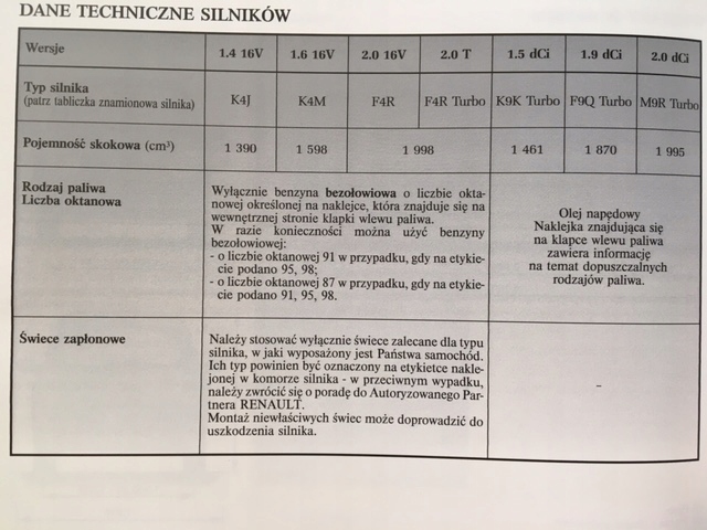 - бензинові двигуни 1.4 1.6 2.0 2.0 T та дизельні 1.5 dCi 1.9 dCi 2.0 dCi