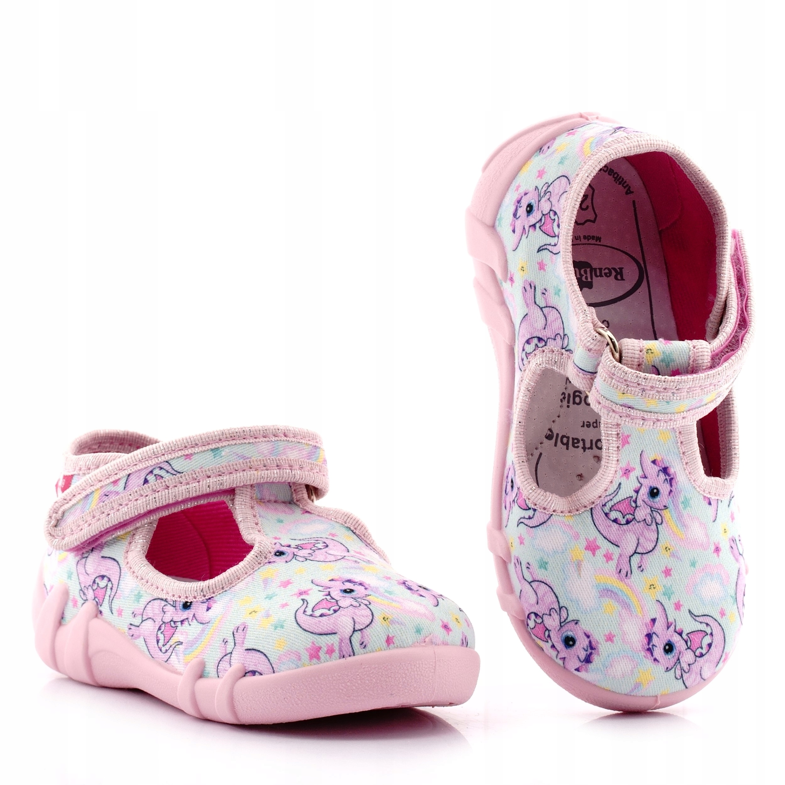 RENBUT KAPCIE PANTOFLE DZIEWCZĘCE BUTY DZIECIĘCE NA RZEP WKŁ.SKÓRA 24