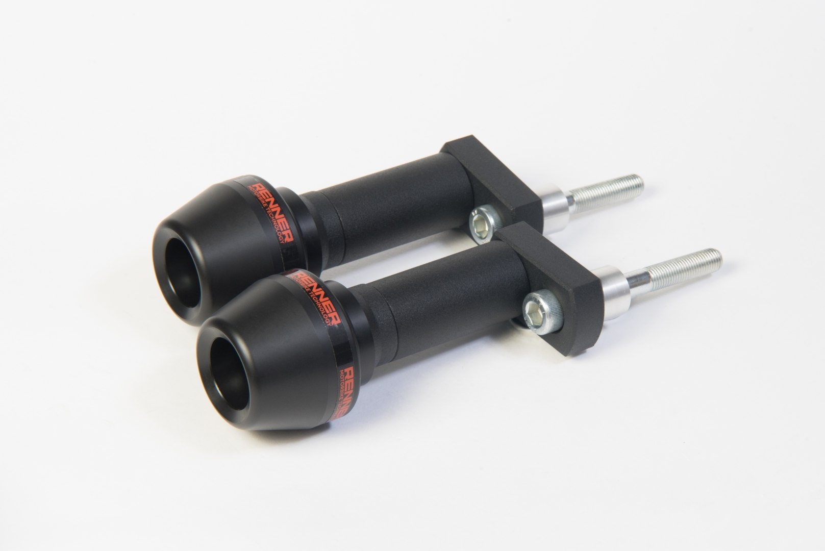 Зсувайте на землю. Елементи, виготовлені на машинах з чисельними керованими. Кріплення доступні в чорному (чорному структурному лаку, аналогічному лаку, який використовують виробники мотоциклів). Ви можете придбати анодовані алюмінієві вставки для набору. Анодовані вставки (без логотипу) доступні чорним, червоним, зеленим та золотим. Внутрішня частина - це правильне кріплення до оригінальних елементів мотоцикла - рамки або блоку двигуна. Сила гвинтів та їх ниток вибирають так, щоб не змусити нитку розбити або згинати рамку мотоцикла під час удару. Гвинти у внутрішній зоні мають набагато більший клас міцності (12,9), ніж гвинти у зовнішній частині (8,8). Таким чином Реннер усунув основний недолік інших аварійних прокладок, доступних на ринку. Основна його роль виконується, оскільки вона відволікає велику частину енергії під час удару по мотоциклу асфальтом. Довжина слайда, форма кріплення та довжина кріпильних гвинтів. Ми рекомендуємо складати професійні послуги з мотоциклів. M10: 46 нм