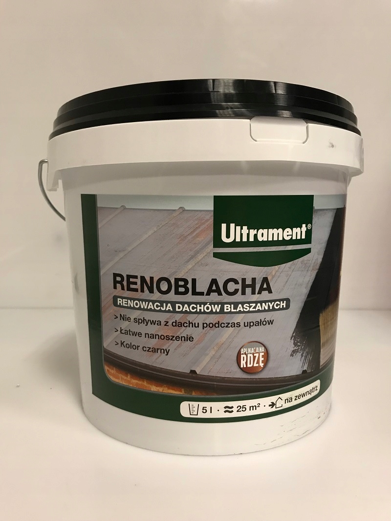 Захисний засіб Renoblacha - препарат для відновлення покрівельних покриттів. Ви можете наносити його безпосередньо на очищене деко, що полегшує використання. Засіб універсальний - підходить також для регенерації покрівельних покриттів з бітумної черепиці або руберойду з мінеральним посипанням. Його також можна використовувати для нанесення на сітку для паркану з оцинкованої сталі. Матеріал можна використовувати на вертикальних і похилих поверхнях, оскільки він не стікає при нагріванні сонячними променями. Висохле покриття забезпечує хорошу покривність і стійкість до ультрафіолетового випромінювання. Він також стійкий до агресивних погодних умов, таких як кислотні дощі. Препарат доступний у зручному відерці.