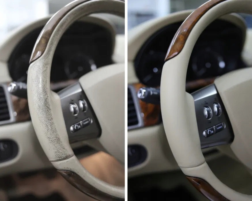 - Структура нанесеного кольору стійка до згинання, води і солі, і залишається м'яким і жирним, зберігаючи природний вигляд шкіри.