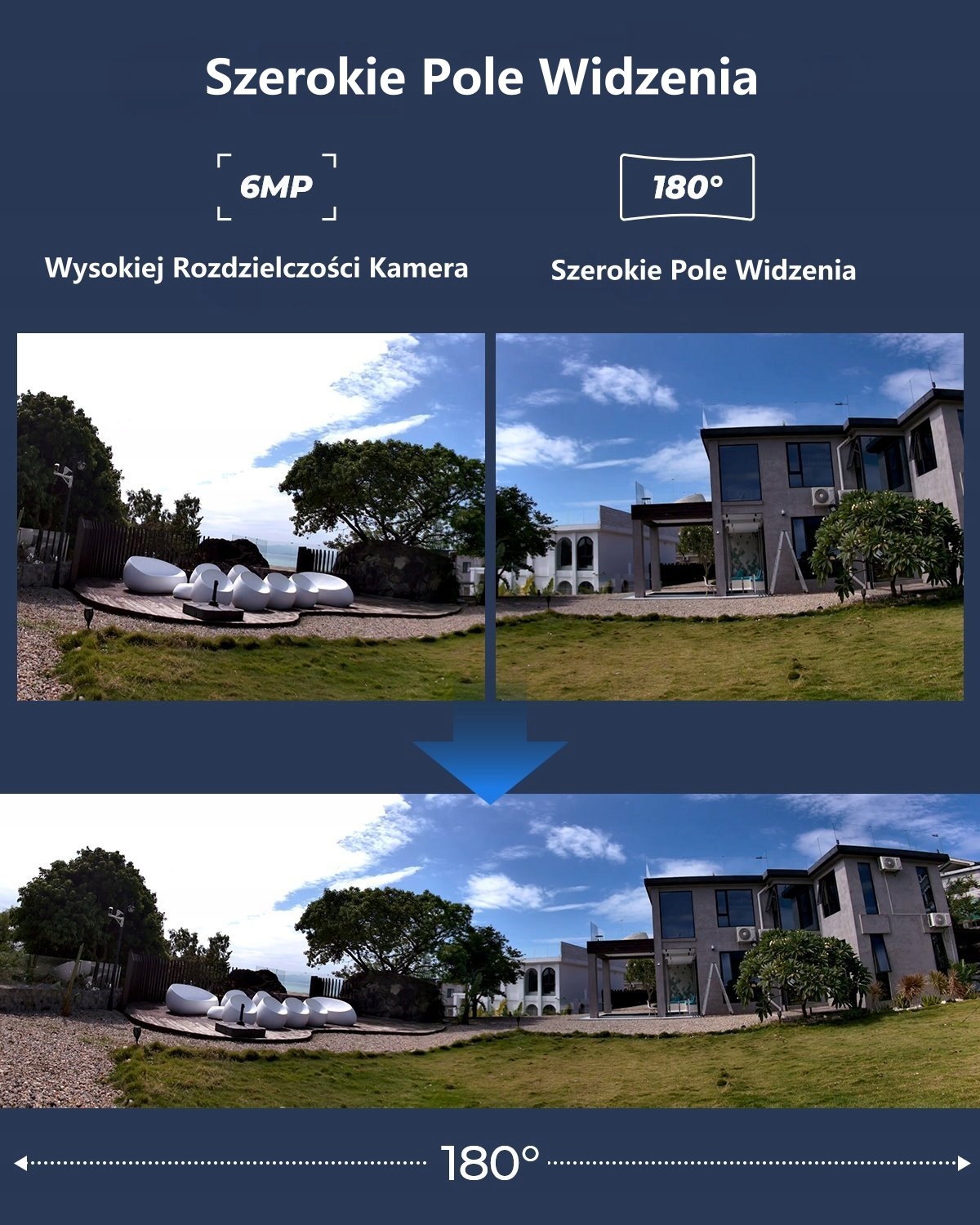 Ця нова модель камери стає такою відмінною завдяки подвійним об’єктивам, які відстежують набагато більшу територію, ніж традиційні камери. Це дозволяє бачити з широким кутом огляду 180° і забезпечує низькі спотворення. Ви можете насолоджуватися більшою зоною огляду та більшою безпекою у своєму домі.