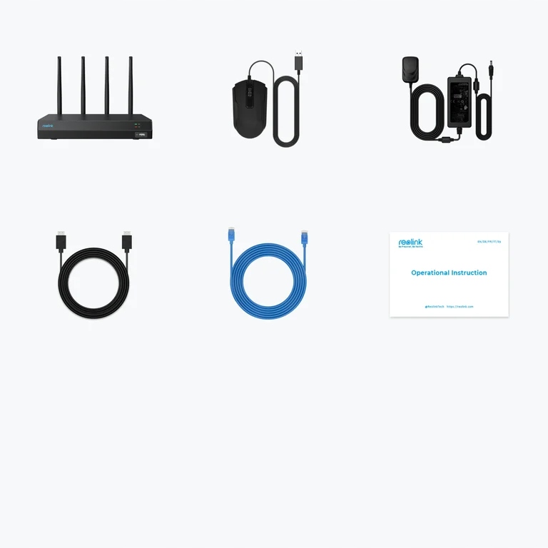 Reolink NVS12W. Входи відеоканалів: 12 каналів, Макс. роздільна здатність: 3840 x 2160 px, Кількість каналів одночасного відтворення: 4 канали. Стандарти Wi-Fi: 802.11a, 802.11b, 802.11g, Wi-Fi 4 (802.11n), Wi-Fi 5 (802.11ac), Wi-Fi 6 (802.11ax), Частота Wi-Fi: дводіапазонний (2,4 ГГц/5 ГГц), Шифрування / безпека: WPA, WPA2, WPA3. Ємність жорсткого диска: 2 ТБ, Максимальна ємність зберігання: 16 ТБ, Інтерфейс жорсткого диска: SATA. Швидкість передачі даних через Ethernet LAN: 10,100,1000 Мбіт/с, Підтримувані мережеві протоколи: HTTPS, TCP/IP, UDP, DHCP, P2P, UPNP, RTMP, RTSP, SMTP, SSL/TLS, DNS, DDNS, NTP, FTP. Колір продукту: чорний