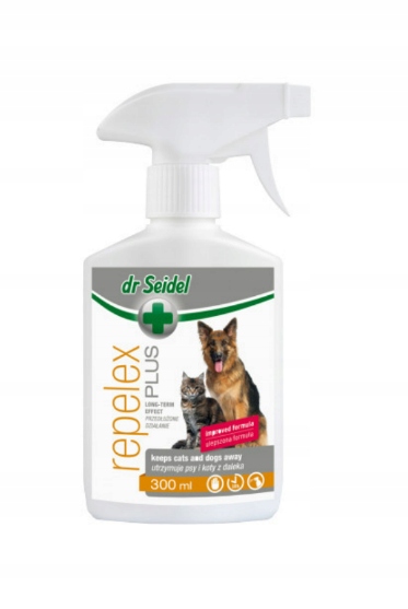 Repelex Plus – поведінковий засіб, рідина тривалої дії. Це допомагає відучити тварину від небажаних форм поведінки, таких як: задоволення фізіологічних потреб у не призначених для цього місцях, руйнування предметів, дряпання, кусання. Аромати, які він містить, сприймаються тваринами як дуже неприємні. Завдяки цьому обприскані поверхні та предмети більше не є об’єктом уваги тварини. Нешкідливий для людей і тварин. Має свіжий аромат лимона.