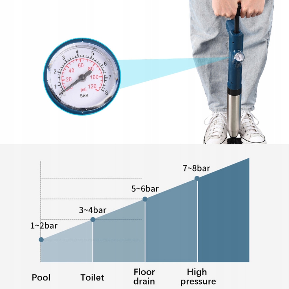 ✅, оснащений датчиком тиску, тиск може відображатися вчасно реально, що полегшує збільшення або зменшення інтенсивності Тиск повітря залежно від різних потреб поглиблення. Негайний атмосферний тиск після відкриття генерує Тиск повітря 0,6 МПа, що відповідає тиску 6 кг/см і, можливо, швидко вийміть замки в трубопроводі.