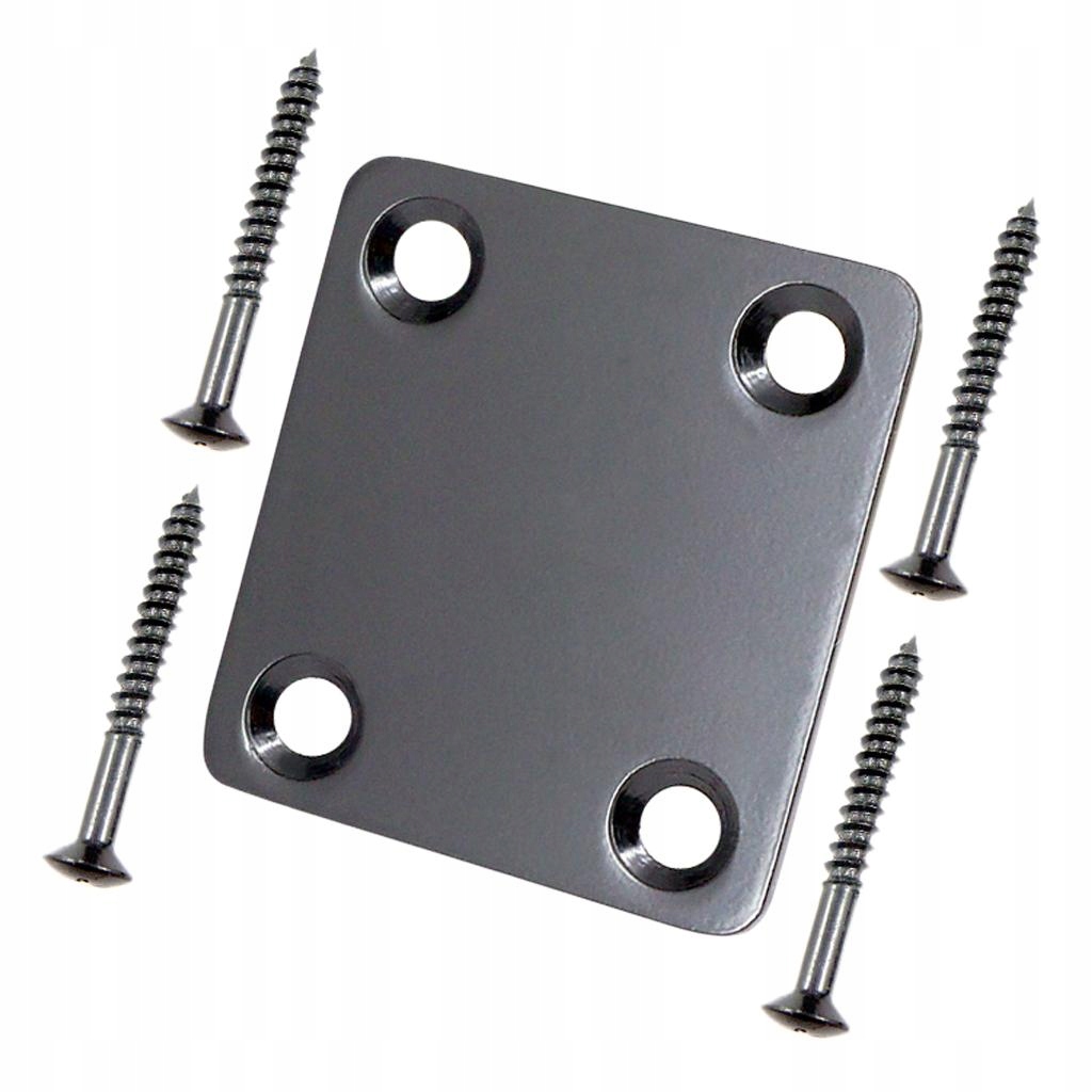 Replacement Bass Guitar Neck Plate Neckplate w/ 4 Screws Black