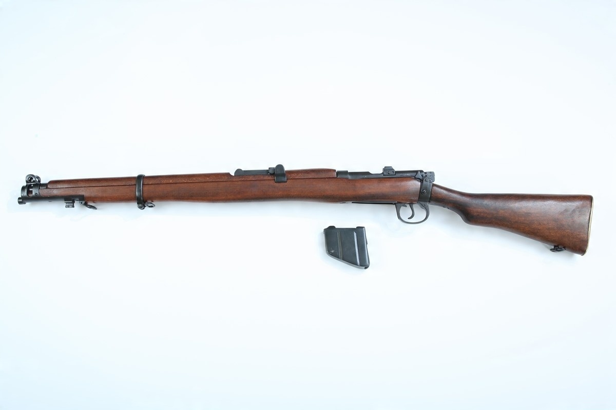 Вірна копія англійської гвинтівки Лі Енфілда, яка використовувалася під час Другої світової війни. Представлена модель має знімний магазин і робочий чотирьохзвенний замок. Також можна перезарядити зброю та зробити сухий постріл.