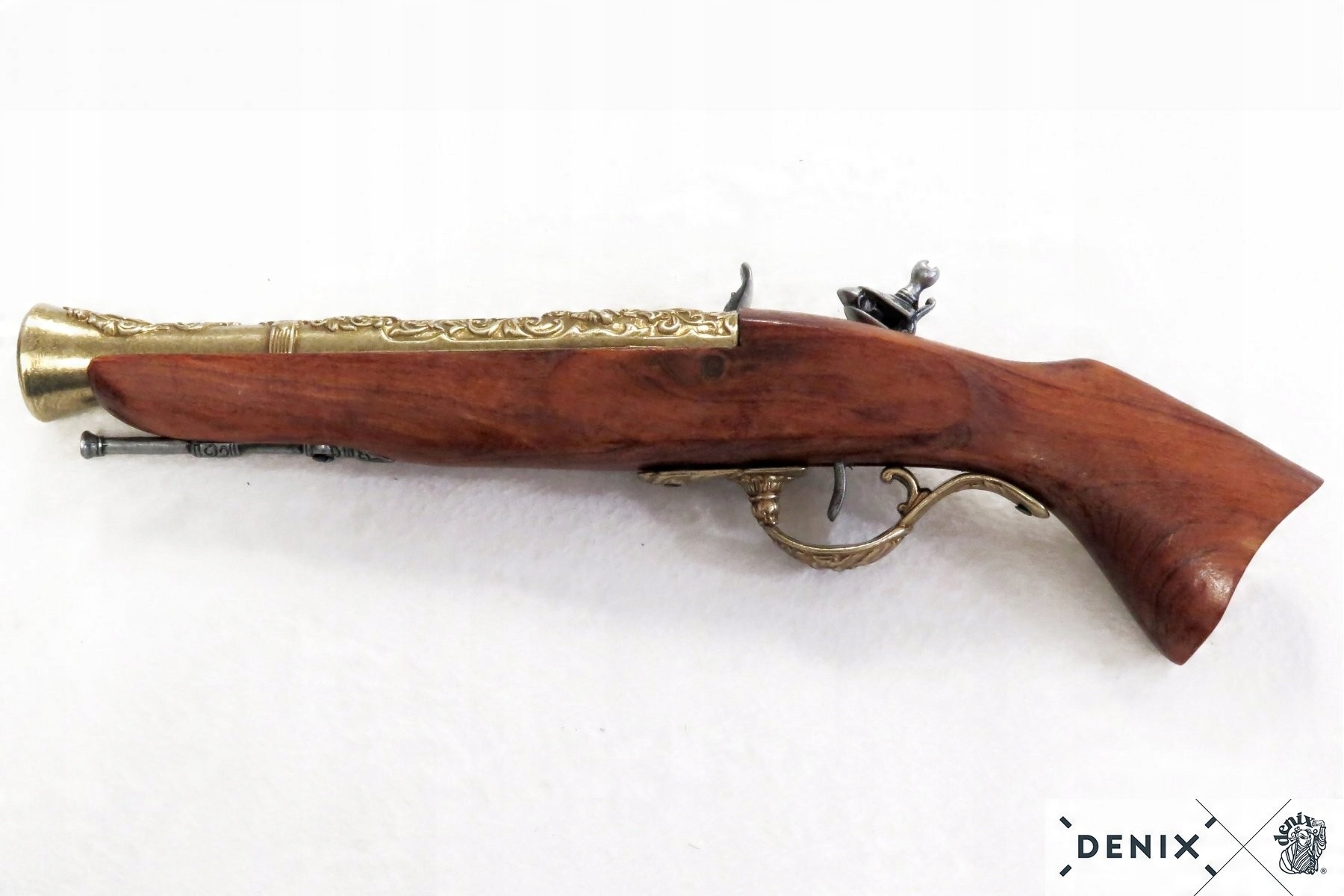 Репліка австрійського пістолета з чорним порохом XVIII століття. Масивна зброя, яка використовується для бою в невеликих просторах. Віддають перевагу пірати під час абордажу. Піратський знак на прикладі, багато декорований ствол з підвішеним очисним стержнем. Ця рушниця порадує всіх, хто цікавиться морською наукою та морськими битвами.
