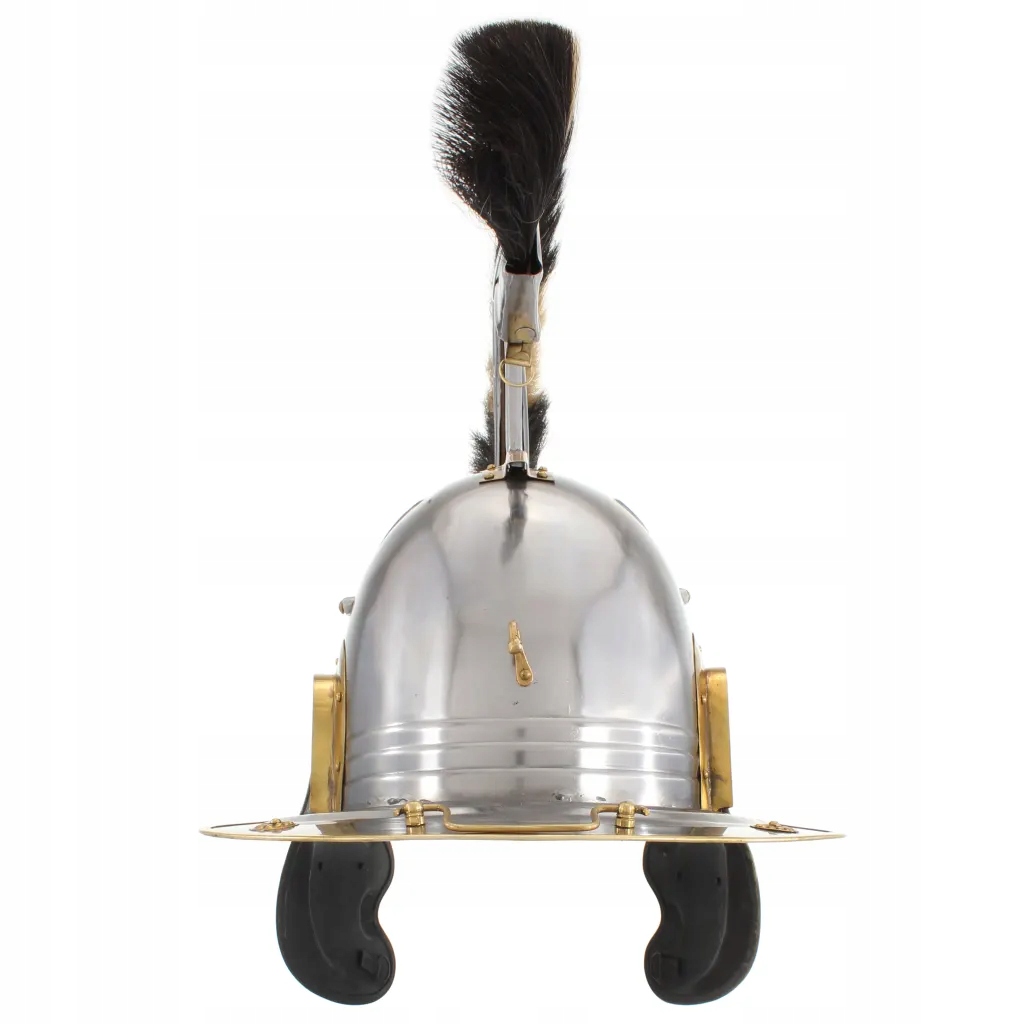 Бойовой шолом є точною копією оригінального римського шолома. Виготовлений зі сталі товщиною 1,024 мм. Він поєднує в собі античний стиль і міцний матеріал. Це буде привабливим доповненням до вашого вбрання воїна. Наш парадний шолом має заокруглений накінець і два протектори для щік із петлями з боків. Оснащений розширеними захисними функціями і шлейфом, шолом гарантує відмінний захист голови користувача без будь-якого дискомфорту. Крім того, це також буде привабливий експонат.