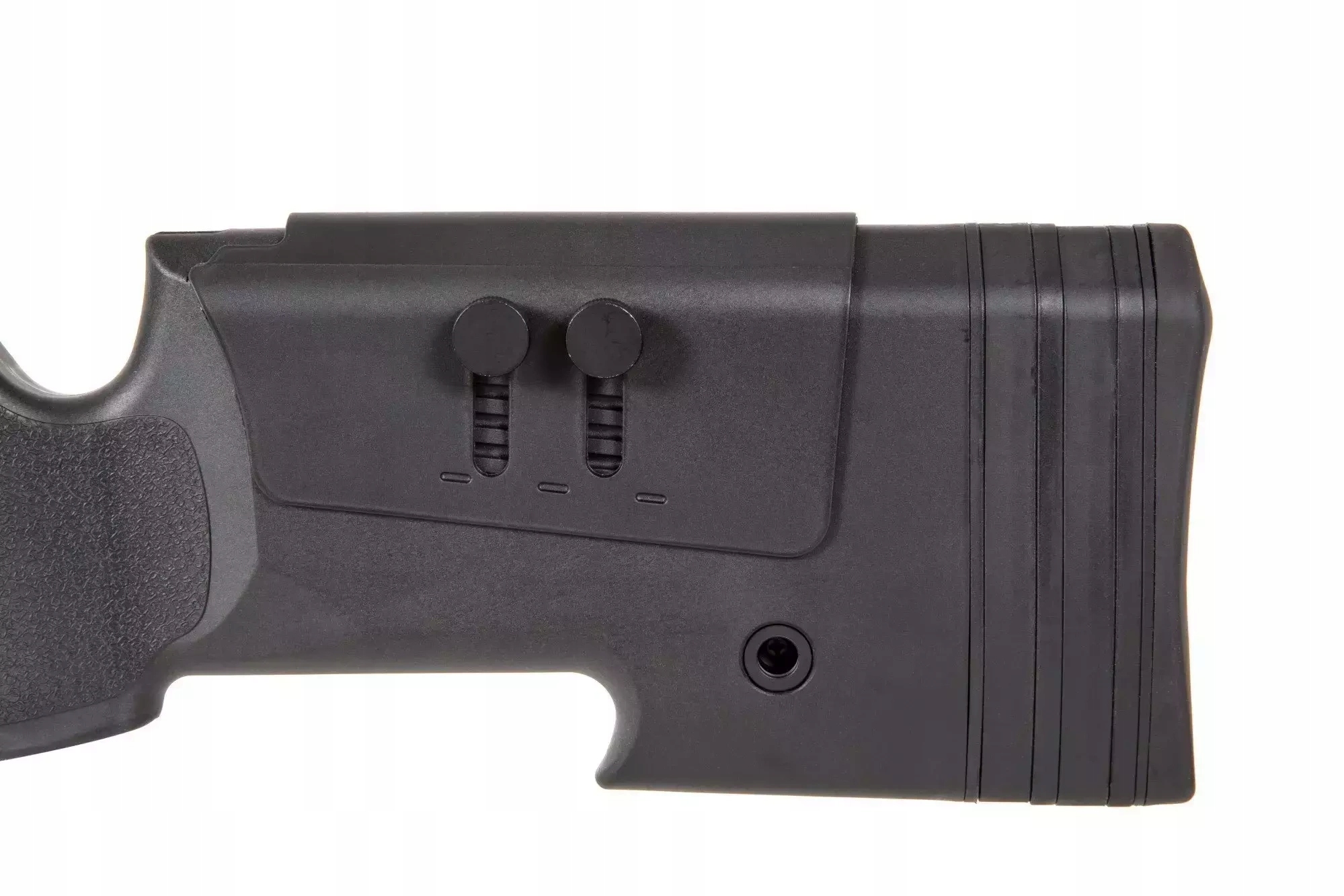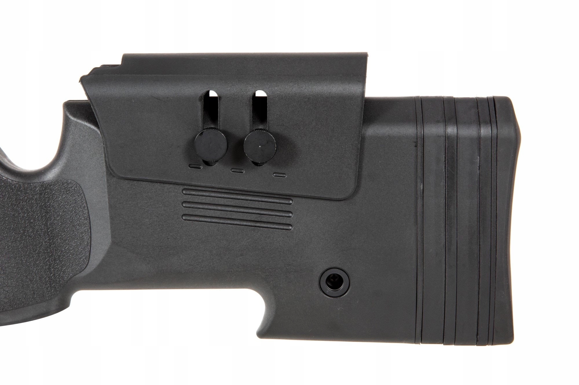 Репліка снайпера Specna Arms оснащена простим і надійним чотиритактним механізмом, який необхідно перезаряджати перед кожним пострілом. Репліка виготовлена з металутаармованого пластику. Весь зовнішній вузол ствола виготовлений із металу, разом із ствольною коробкою, спусковим гачком і рукояткою заряджання, а також напрямними аксесуарів RIS/Picatinny та всіма елементами кріплення, такими як гвинти. Ців'я з прикладом, защечник, затильник і магазин виготовлені з міцного пластику. Сам затильник оброблений зручною гумовою накладкою, її товщина регулюється завдяки комплекту змінних накладок. У поєднанні з регульованою подушечкою для щоки це дає змогу регулювати приклад відповідно до вподобань стрільця.