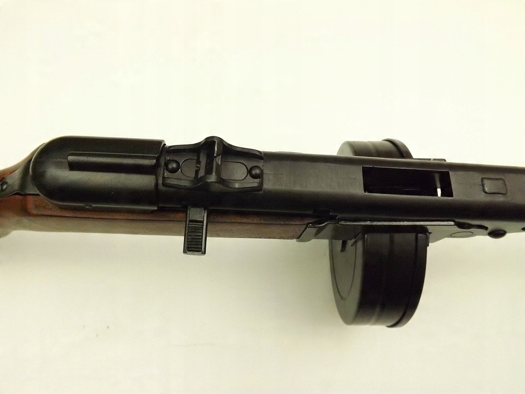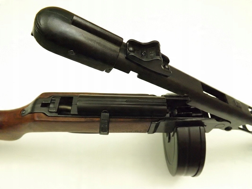 Вірна копія радянського кулемета ППШ-41 1941 року, широко відомого як pepesza або pepeszka. Оригінал був розроблений Георгієм Шпагіним і введений у 1941 році на озброєння Червоних Армія в роки Другої світової війни. На озброєння Війська Польського він був прийнятий лише в 1943 році. Рухомі елементи, красиве дерево, метал. Точне виконання. Розмір і вага як в оригіналі.