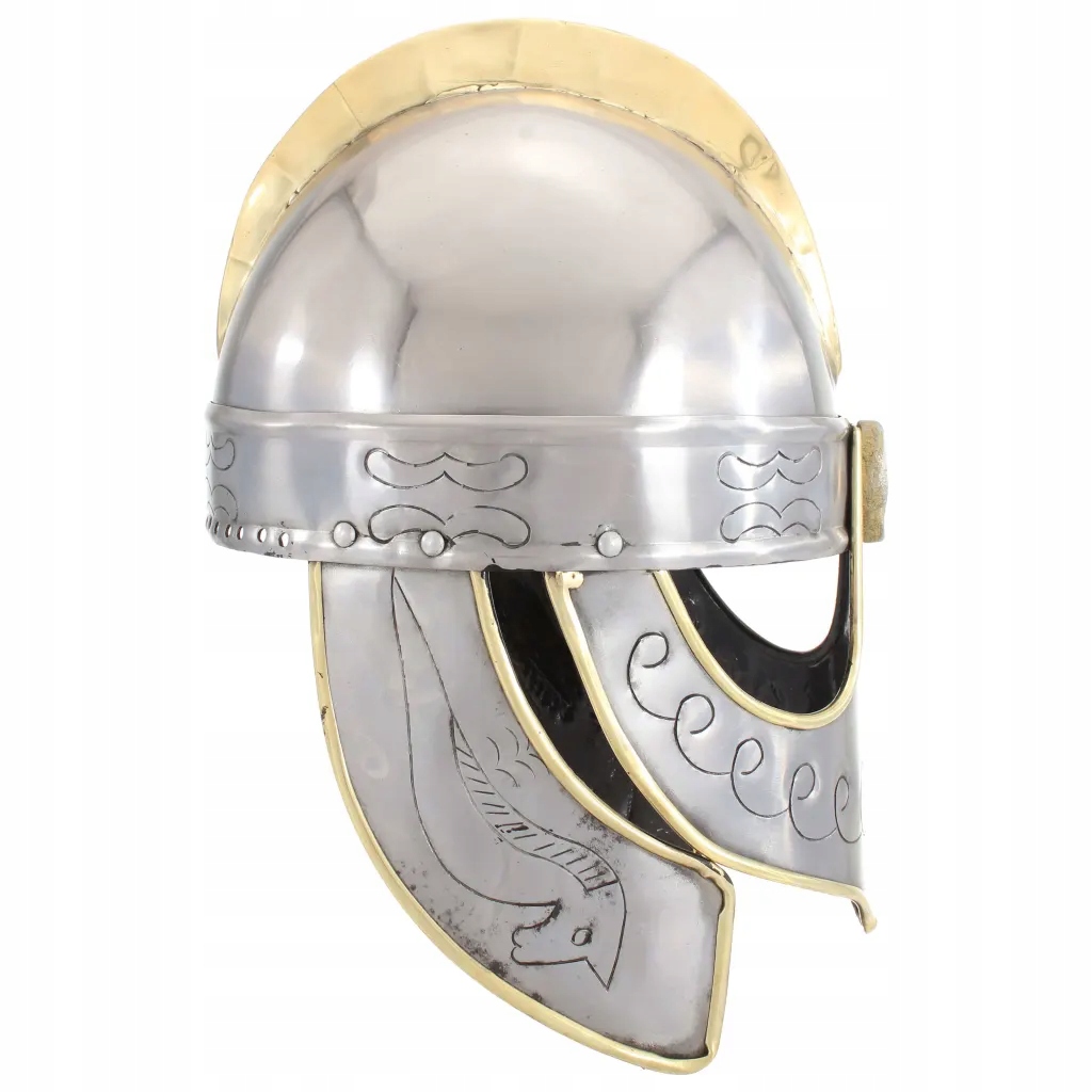 Цей бойовий шолом з історичним виглядом чудово підходить для LARP (речовина в прямому ефірі), косплей, історичні події, події на Хеллоуїн, як театральна опора або для історичної реконструкції. Він був виготовлений зі сталі з товщиною 1,024 мм, шолом поєднує в стародавньому стилі та твердому матеріалі. Це буде привернення очей до вбрання вашого лицаря. Крім того, це також привабливий виставковий елемент.