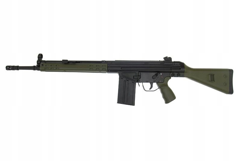 Копія з металу та АБС, виробництва JG. Зовнішній ствол, прицільні пристосування, магазин і курок виготовлені з металу, а корпус, приклад і пістолетна рукоятка виготовлені з міцного матеріалу - ABS. Ця комбінація, яку також використовувала відома компанія Tokio Marui, дозволила репліці бути значно міцнішою, зберігаючи низьку вагу.