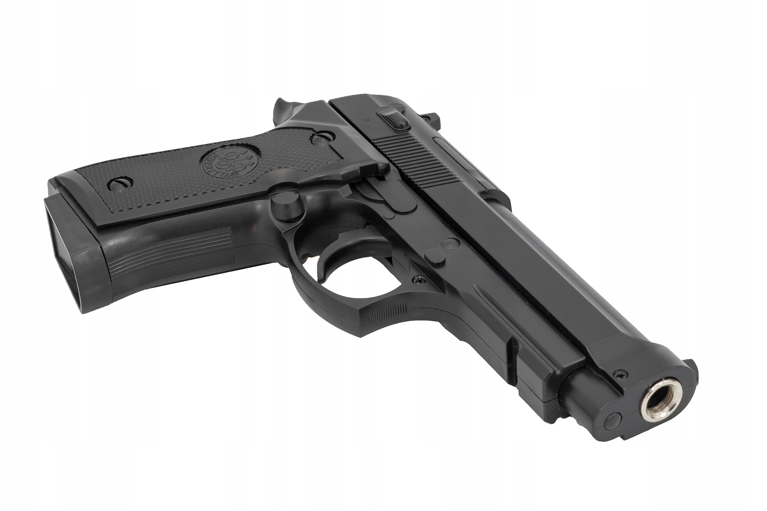 Чудова копія пістолета Beretta 92. Пістолети італійської компанії Beretta прославилися, в тому числі, як основна зброя армії США, в тому числі Navy SEAL. Вищевказана модель також з'являлася у багатьох фільмах, іграх та Інтернеті. Репліка має оригінальне маркування та майже ідентичну форму справжньому аналогу вогнепальної зброї. Перевагою репліки є пістолетна рукоятка з накладками, які запобігають вислизанню з руки, і збільшений магазин на 12 кулеметів.
