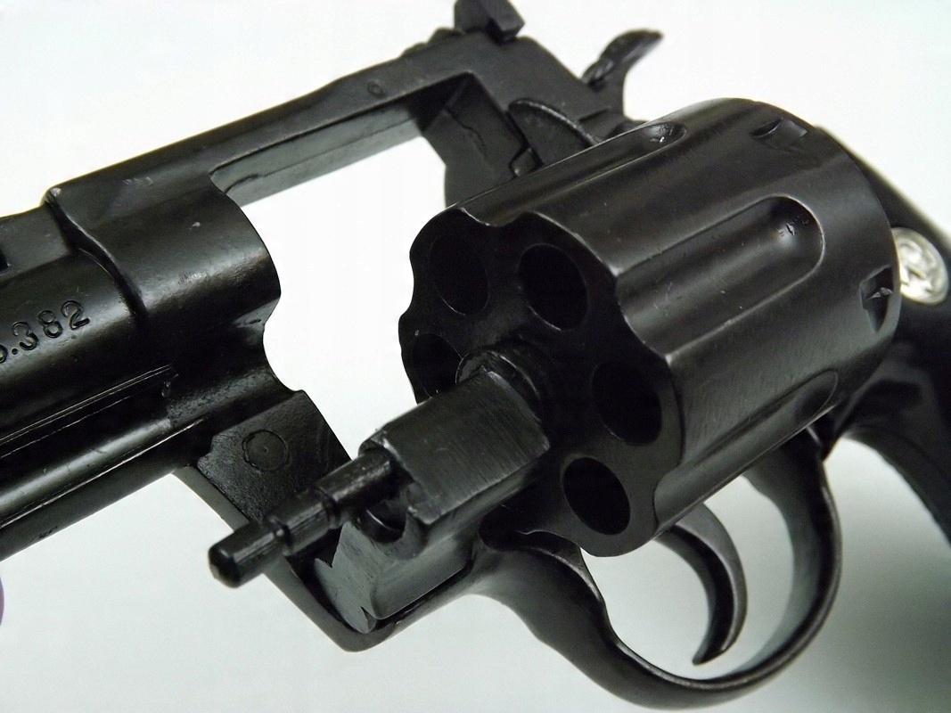 Вірна копія американського револьвера Python калібру 357, Magnum 8" 1955 року. Має магазин, що відкривається і обертається, що дозволяє його перезаряджати і повертати в т.зв сухий постріл.