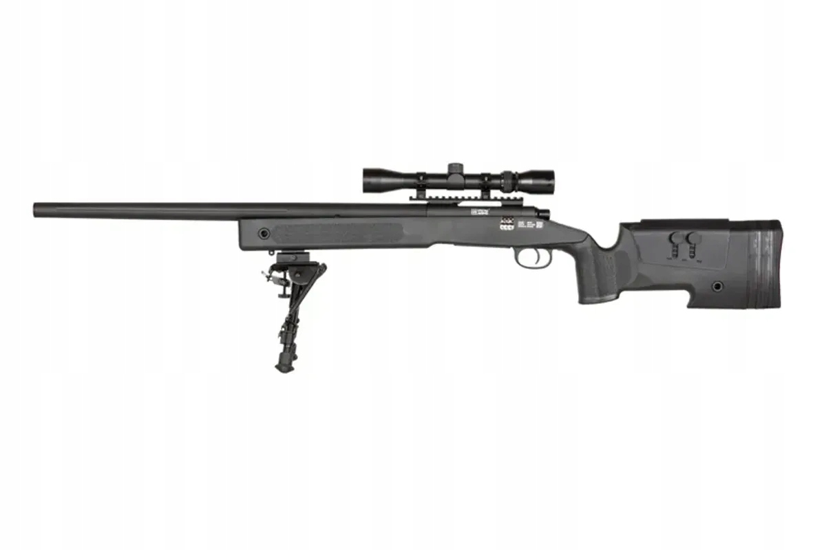 Репліка снайпера Specna Arms оснащена простою та надійною чотиритактною системою, яку необхідно перезаряджати перед кожним пострілом. Репліка виготовлена з металутаармованого пластику. Весь зовнішній вузол ствола виготовлений із металу, разом із ствольною коробкою, спусковим гачком і рукояткою заряджання, а також напрямними аксесуарів RIS/Picatinny та всіма елементами кріплення, такими як гвинти. Ців'я з прикладом, защечник, затильник і магазин виготовлені з міцного пластику. Сам затильник оброблений зручною гумовою накладкою, її товщина регулюється завдяки комплекту змінних накладок. У поєднанні з регульованою накладкою для щоки це дозволяє регулювати приклад відповідно до вподобань стрільця.