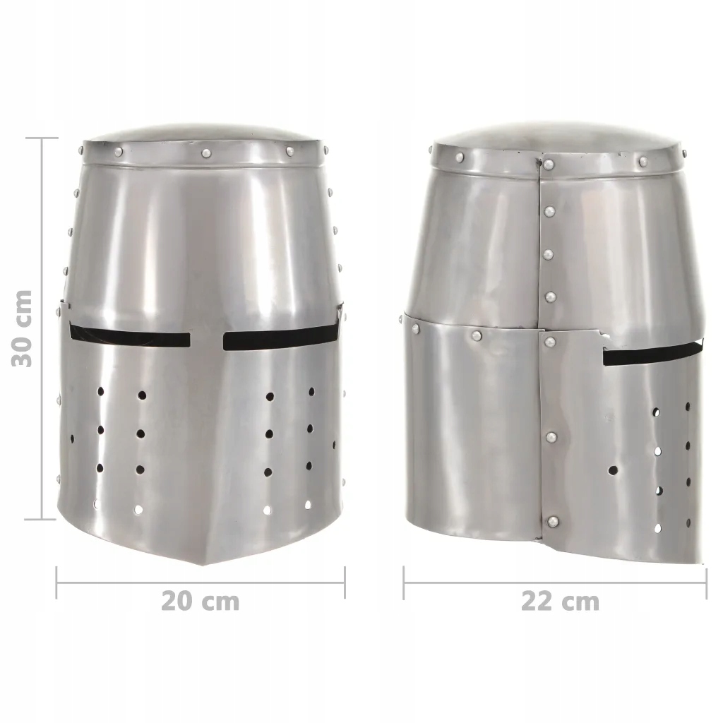 Бойовой шолом є точною копією оригінального лицарського шолома. Він виготовлений зі сталі товщиною 1,024 мм і поєднує в собі античний стиль і міцний матеріал. Він стане привабливим доповненням до вашого костюма лицаря. Цей зручний шолом закриває голову та має невеликі отвори для видимості та вентиляції, забезпечуючи набагато кращий захист, ніж звичайний шолом. Крім того, це також буде привабливий експонат.