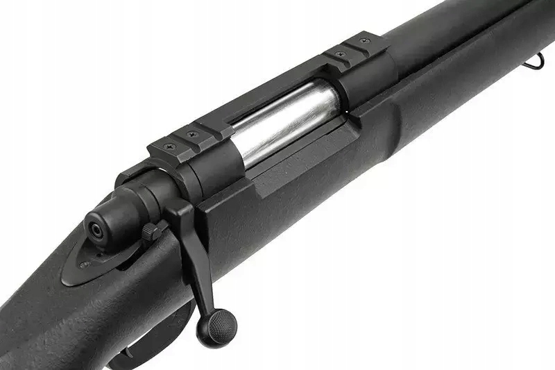 Репліка CM702 виробництва CM — це репліка популярної снайперської гвинтівки в пружинному варіанті, оснащена чотирьохзрубним замком. Ложа рушниці виготовлена з дуже міцного високоякісного армованого пластику чорного матового кольору. Приклад завершується зручним затильником із товстої гуми. Цікаво, що затильник має можливість плавного регулювання, що дозволить підлаштувати довжину рушниці під комплекцію та вподобання стрільця. Також на ліжку є дві металеві ручки для кріплення тактичного ременя/стропи, а також сталевий адаптер для сошок. Репліка надходить до нас двома частинами, що полегшує транспортування. Їх складання займає буквально мить і вимагає використання кількох гвинтів з шестигранним шестигранником.